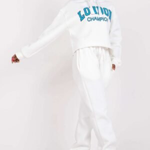 Casualowy komplet dresowy, składający się z bluzy i spodni, to idealny wybór na codzienne stylizacje. Bluza z nadrukiem na przodzie oraz praktycznym kapturem nadaje zestawowi nowoczesny, miejski charakter. Troczki przy bluzie i spodniach umożliwiają regulację, zapewniając wygodę i indywidualne dopasowanie. Spodnie o długich nogawkach, zakończone ściągaczami, gwarantują stylowy wygląd i komfort noszenia. Wysoki stan spodni oraz boczne wsuwane kieszenie dodają funkcjonalności i podkreślają wygodę kompletu. Wykonany z dominującej bawełny, zestaw jest miękki, przewiewny i idealny na swobodny dzień w domu lub na spacerze.