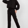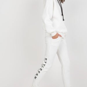 Komplet dresowy składający się z bluzy oraz spodni. Bluza zapinana na plecach, z długim rękawem oraz kapturem. Długie spodnie z wiązaniem w pasie, kieszeniami wsuwanymi oraz zamkami.