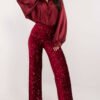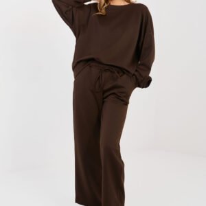 Stylowy komplet damski składający się z bluzy i spodni, idealny do codziennych stylizacji w casualowym wydaniu. Wykonany z miękkiej i przyjemnej w dotyku wiskozy z dodatkiem elastanu, która zapewnia komfort noszenia oraz swobodę ruchów przez cały dzień. Bluza o długiej długości posiada okrągły dekolt oraz długi rękaw, ozdobiony subtelną materiałową różą przy nadgarstku, która dodaje całości kobiecego i oryginalnego charakteru. Spodnie z wysokim stanem i prostymi nogawkami gwarantują wygodę i ponadczasowy wygląd. W pasie zastosowano wszytą gumę oraz troczki do wiązania, umożliwiające idealne dopasowanie do sylwetki. Dodatkowym atutem są boczne kieszenie wsuwane, zwiększające funkcjonalność kompletu. Gładki wzór sprawia, że komplet jest uniwersalny i łatwy do stylizowania, doskonały zarówno na spacer, jak i na co dzień. To propozycja dla kobiet ceniących komfort, styl i subtelne detale.