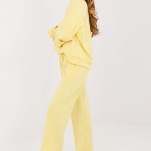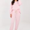 Stylowy komplet damski składający się z bluzy i spodni, idealny do codziennych stylizacji w casualowym wydaniu. Wykonany z miękkiej i przyjemnej w dotyku wiskozy z dodatkiem elastanu, która zapewnia komfort noszenia oraz swobodę ruchów przez cały dzień. Bluza o długiej długości posiada okrągły dekolt oraz długi rękaw, ozdobiony subtelną materiałową różą przy nadgarstku, która dodaje całości kobiecego i oryginalnego charakteru. Spodnie z wysokim stanem i prostymi nogawkami gwarantują wygodę i ponadczasowy wygląd. W pasie zastosowano wszytą gumę oraz troczki do wiązania, umożliwiające idealne dopasowanie do sylwetki. Dodatkowym atutem są boczne kieszenie wsuwane, zwiększające funkcjonalność kompletu. Gładki wzór sprawia, że komplet jest uniwersalny i łatwy do stylizowania, doskonały zarówno na spacer, jak i na co dzień. To propozycja dla kobiet ceniących komfort, styl i subtelne detale.