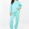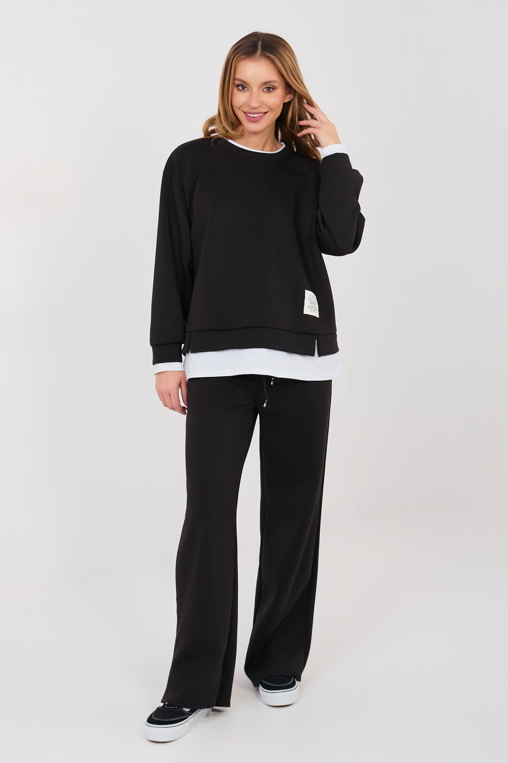Komplet dresowy w stylu casual to doskonały wybór na co dzień dla kobiet ceniących wygodę i nowoczesny minimalizm. Gładki wzór podkreśla uniwersalny charakter zestawu, dzięki czemu świetnie sprawdzi się zarówno podczas codziennych wyjść, jak i w domowym zaciszu. Wykonany z wysokiej jakości mieszanki poliestru, wiskozy i elastanu, komplet zapewnia komfort noszenia, elastyczność oraz przyjemne dopasowanie do sylwetki. Materiał jest miękki, trwały i odporny na zagniecenia, co sprawia, że zestaw zachowuje estetyczny wygląd przez długi czas. Bluza z długim rękawem została wykończona kontrastowymi wstawkami, które nadają całości modowego charakteru. Dodatkowym akcentem jest naszywka umieszczona na przodzie, po lewej stronie u dołu, podkreślająca nowoczesny styl kompletu. Spodnie o długiej długości z prostymi nogawkami i wysokim stanem pięknie modelują sylwetkę oraz zapewniają wygodę noszenia. W pasie znajdują się troczki do wiązania, umożliwiające idealne dopasowanie, a boczne kieszenie wsuwane zwiększają funkcjonalność zestawu. To stylowy i praktyczny komplet, który łączy komfort z ponadczasową prostotą.