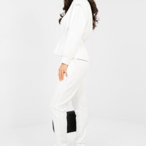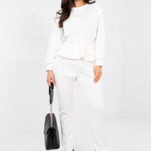 Stylowy komplet damski składający się z bluzy i spodni, idealny na co dzień oraz do pracy w mniej formalnym wydaniu. Casualowy charakter zestawu łączy wygodę z nowoczesnym, minimalistycznym designem. Model wykonany z wysokiej jakości mieszanki poliestru, wiskozy i elastanu, dzięki czemu materiał jest miękki, elastyczny i przyjemny w noszeniu. Gładka tkanina podkreśla uniwersalny styl kompletu i ułatwia tworzenie różnorodnych stylizacji. Bluza z długim rękawem i klasycznym, okrągłym dekoltem zapewnia komfort oraz ponadczasowy wygląd. Marszczenia w pasie dodają jej lekkości i subtelnie podkreślają sylwetkę. Spodnie z wysokim stanem oraz elastyczną gumą w pasie gwarantują wygodne dopasowanie. Długie nogawki zakończone ściągaczami nadają sportowej nuty, a boczne kieszenie wsuwane zwiększają funkcjonalność. To praktyczny i stylowy zestaw, który sprawdzi się zarówno podczas codziennych obowiązków, jak i w pracy, zapewniając komfort przez cały dzień. Materiał typu masełko miękki, delikatny i wyjątkowo przyjemny w dotyku.