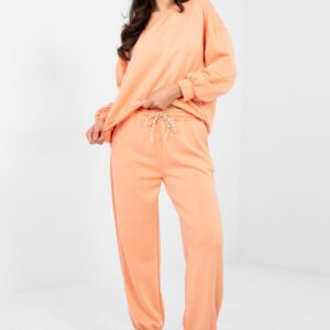 Stylowy komplet dresowy w casualowym wydaniu to idealna propozycja na codzienne stylizacje. Gładki wzór nadaje mu uniwersalnego charakteru, dzięki czemu świetnie sprawdzi się zarówno podczas relaksu, spacerów, jak i w miejskich zestawach. Bluza z długim rękawem i okrągłym dekoltem zapewnia wygodę oraz ponadczasowy wygląd. Dodatkowym atutem jest subtelna naszywka umieszczona na lewym rękawie, która nadaje całości modnego akcentu. Spodnie z długimi nogawkami zakończonymi ściągaczami doskonale dopasowują się do sylwetki. Wysoki stan podkreśla talię i zwiększa komfort noszenia, a boczne kieszenie wsuwane dodają funkcjonalności. Komplet wykonany jest z miękkiej i elastycznej mieszanki wiskozy oraz elastanu, co gwarantuje przyjemność noszenia, swobodę ruchów i idealne dopasowanie do sylwetki. To wygodny i stylowy zestaw na co dzień. Materiał typu masełko miękki, delikatny i wyjątkowo przyjemny w dotyku.