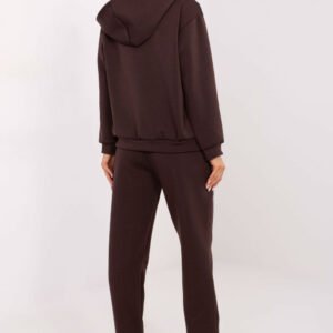 Stylowy komplet dresowy składający się z bluzy oraz spodni, idealny na codzienne, casualowe stylizacje. Wykonany z wysokiej jakości wiskozy o urozmaiconej fakturze, z materiału typu masełko miękkiego, delikatnego i wyjątkowo przyjemnego w dotyku, który gwarantuje maksymalny komfort noszenia. Bluza posiada długi rękaw oraz praktyczny kaptur, a jej front zdobi ozdobne pikowanie, które nadaje całości nowoczesnego charakteru. Model jest zapinany na zamek, co zwiększa wygodę użytkowania. Na wysokości piersi znajdują się kieszenie z patkami, ozdobione eleganckimi broszkami, dodając subtelnej oryginalności i stylowego wykończenia. Spodnie mają wysoki stan, zwężane nogawki oraz wszytą gumę w pasie z dodatkowym wiązaniem, co zapewnia idealne dopasowanie i komfort. Wyposażone są również w boczne, wsuwane kieszenie, dzięki czemu są praktyczne na co dzień. Nogawki długie, wygodne i świetnie układające się na sylwetce. Komplet zachwyca połączeniem wygody, funkcjonalności i modnych detali, idealny dla kobiet ceniących stylowy wygląd w casualowym wydaniu.
