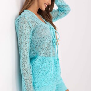 Ażurowy komplet damski składający się z koszuli i szortów to idealna propozycja na codzienne, letnie stylizacje w stylu casual. Wykonany z przyjemnej w dotyku mieszanki bawełny, elastanu i poliestru, zapewnia komfort noszenia oraz swobodę ruchów. Koszula z długim rękawem i dekoltem w serek zapinana jest w formie stylowego wiązania, co dodaje lekkości i nowoczesnego charakteru całemu zestawowi. Szorty o szerokich nogawkach i wysokim stanie zostały wyposażone w praktyczne, boczne kieszenie wsuwane oraz wygodną podszewkę, zapewniającą komfort i dyskrecję. Ażurowy wzór nadaje kompletowi subtelnego uroku, czyniąc go doskonałym wyborem na ciepłe dni zarówno na spacer, jak i spotkanie z przyjaciółmi.