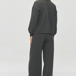 Dresowy komplet to idealna propozycja dla osób ceniących wygodę i styl w codziennych, casualowych stylizacjach. Dres składa się z luźnej bluzy oraz szerokich spodni, co zapewnia maksymalny komfort noszenia. Całość jest wykonana z miękkiego, przyjemnego w dotyku materiału, który idealnie sprawdzi się na chłodniejsze dni. Bluza ma klasyczny, prosty krój z długimi rękawami i lekko opadającym ramieniem. Wykończona jest okrągłym dekoltem. Spodnie mają szerokie nogawki, co nadaje całości modny, oversizeowy charakter a przeszycie wzdłuż nogawek optycznie wydłuża nogi. Elastyczny pas w talii zapewnia wygodne dopasowanie. Taki zestaw idealnie sprawdzi się na codzienne wyjścia, zakupy czy spotkania z przyjaciółmi. Ten komplet to połączenie funkcjonalności i stylu, idealne dla osób, które chcą czuć się wygodnie, nie rezygnując przy tym z modnego wyglądu.
