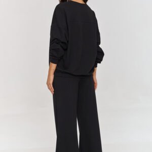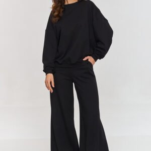 Ten komplet dresowy to idealny wybór dla kobiet, które cenią funkcjonalność i styl. Zestaw składa się z oversizowej bluzy z długimi rękawami oraz luźnych spodni, które tworzą komfortową, ale stylową całość. Dzięki szerokiemu krojowi, spodnie zapewniają pełną swobodę ruchów, a elastyczny pas dopasowuje się do sylwetki. Dodatkowo są poszerzane ku dołowi nadając zestawowi wyjątkowy i dynamiczny charakter. Bluza z klasycznym okrągłym dekoltem i rękawami zakończonymi ściągaczami dopełnia całość, tworząc wygodny i ciekawy komplet. Dres wykonany z miękkiego i przyjemnego w dotyku materiału dresowego, który zapewnia komfort każdego dnia. Dzięki prostemu, ale efektownemu krojowi, zestaw świetnie sprawdzi się w różnych sytuacjach. Nasz komplet dresowy to wybór, który łączy luz, funkcjonalność i nowoczesny wygląd. Sprawdzi się zarówno na relaks w domu, jak i na spotkania z przyjaciółmi, zakupy czy na co dzień. Zestaw idealnie komponuje się z ulubionymi sneakersami, tworząc stylową, wygodną i modową stylizację.