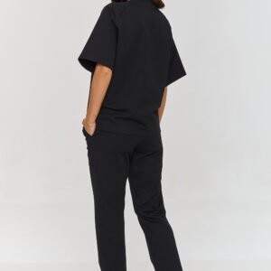 Ten wygodny komplet dresowy to idealna propozycja na codzienne stylizacje i aktywny wypoczynek. Posiada luźną bluzkę z okrągłym dekoltem wykończonym delikatnym ściągaczem oraz reglanowymi rękawami doskonałymi dla osób chcących skorygować linię ramion. Klasyczne spodnie z prostymi nogawkami mają wszyty w pasie ściągacz, który pozwala na dopasowanie się do sylwetki a duże naszyte kieszenie dodają stylowego akcentu i funkcjonalności. Takie połączenie elementów garderoby tworzy harmonijną i wygodną całość. Prosty i luźny krój tego zestawu sprawia, że jest ponadczasowy i uniwersalny zachowując przy tym swobodę i modny wygląd. Dresowy komplet wykonany jest z przewiewnego, bawełnianego materiału, który czyni go praktycznym nawet podczas cieplejszych dni. Taki zestaw idealnie sprawdzi się na codzienne wyjścia, zakupy, spotkania z przyjaciółmi czy inne aktywności fizyczne. Ten dres to połączenie funkcjonalności i stylu, idealne dla osób, które chcą czuć się wygodnie, nie rezygnując przy tym z modnego wyglądu.
