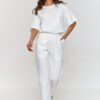 Ten komfortowy, dresowy komplet to idealne rozwiązanie dla kobiet, które cenią sobie wygodę i ponadczasowość w codziennych stylizacjach. Oversizowy krój t-shirtu gwarantuje pełną swobodę ruchu i modny wygląd. Krótki rękaw oraz klasyczny okrągły dekolt sprawiają, że jest to idealna niezobowiązująca baza do codziennych stylizacji. Szorty mają elastyczny pas, co zapewnia odpowiednie dopasowanie a boczne kieszenie podkreślają ich funkcjonalność. Luźny krój spodenek oraz szerokie nogawki zapewniają pełną swobodę ruchów, a krótsza długość sprawia, że idealnie nadają się na ciepłe dni. Prosty, ale efektowny dresowy komplet łączy minimalistyczny design z komfortem, tworząc świetną opcję na codzienne stylizacje. To must-have na relaks w domu, spotkania ze znajomymi czy krótkie wypady. Jednakże jego uniwersalność pozwala również na wykorzystanie go do różnych aktywności fizycznych.