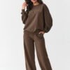 Ten elegancki komplet to idealna propozycja na wiosenne i letnie dni, kiedy chcesz połączyć modny wygląd z wysoką jakością wykonania. Zestaw posiada luźną bluzkę o pudełkowym kroju, który idealnie pasuje do eleganckich stylizacji. Krótki rękaw i prosty fason bluzki sprawiają, że jest to doskonała opcja na formalne i mniej formalne wyjścia, łącząc elegancję z wygodą. Spodnie wyróżniają się szerokimi nogawkami, które nadają stylizacji nowoczesny i elegancki wygląd. Elastyczny pas zapewnia komfort noszenia, a ich długość dodaje całości klasy i stylu. Model wykonany z delikatnego i lekkiego materiału imitującego len. Prosty, ale wysublimowany krój sprawia, że komplet ma ponadczasowy charakter, który będzie wyglądać stylowo na każdej sylwetce. Zestaw doskonale sprawdzi się na spotkania biznesowe, eleganckie wyjścia czy wypady do miasta, kiedy zależy Ci na połączeniu elegancji i swobody. Możesz go zestawić ze szpilkami, eleganckimi sandałami lub białymi sneakersami.