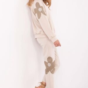 Ten elegancki, a zarazem niezwykle wygodny komplet dresowy to idealny wybór na codzienne stylizacje. Wykonany z wysokiej jakości mieszanki wiskozy, bawełny i elastanu, zapewnia miękkość, przewiewność oraz idealne dopasowanie do sylwetki. Bluza z długim rękawem i praktycznym kapturem chroni przed chłodem, a subtelne wstawki w kształcie kwiatów z ozdobnymi cyrkoniami dodają jej wyjątkowego charakteru. Spodnie z wysokim stanem i prostymi nogawkami gwarantują wygodę, a boczne wsuwane kieszenie zwiększają funkcjonalność. Stylowe kwiatowe aplikacje pojawiają się również na spodniach, tworząc spójną i modną całość. To idealny wybór dla kobiet ceniących połączenie casualowego stylu z nutą elegancji. Świetnie sprawdzi się na co dzień, zapewniając komfort i efektowny wygląd.