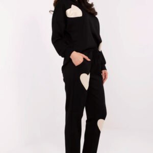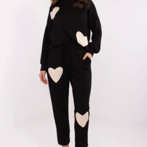 Casualowy komplet damski dresowy, łączący wygodę z modnym wyglądem. Wykonany z miękkiej mieszanki wiskozy, bawełny i elastanu, zapewnia komfort noszenia przez cały dzień. Gładki materiał nadaje mu uniwersalnego charakteru, a ozdobne naszywki w kształcie serca na bluzie i spodniach dodają subtelnej, kobiecej elegancji. Bluza z długim rękawem i praktycznym kapturem świetnie sprawdzi się w chłodniejsze dni. Spodnie o prostym kroju z wysokim stanem i wsuwanymi bocznymi kieszeniami gwarantują wygodę i swobodę ruchów. To idealny wybór na codzienne stylizacje, doskonały zarówno na spacer, jak i relaks w domowym zaciszu.