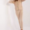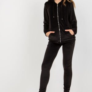 Komplet welurowy składający się z bluzy i długich spodni. Bluza z długim rękawem oraz kapturem, zapinana na zamek. Na przodzie kieszenie wsuwane. Długie spodnie z wiązaniem w pasie, po bokach kieszenie wsuwane.