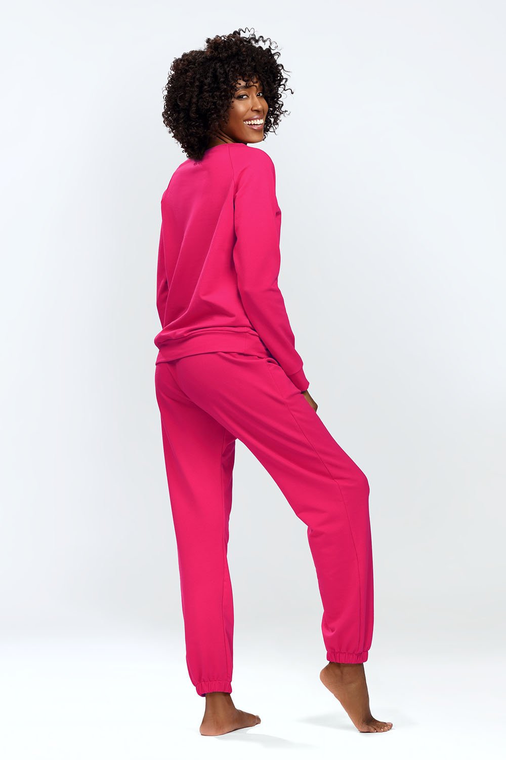 Bluza Wenezja na długi rękaw bez kaptura. Wykonana jest z gładkiego, miłego materiału. Nie posiada zamka oraz kieszeni. Prosty design dopasowany do każdego stylu. Idealne ubranie domowe pozwoli Ci wypocząć w zaciszu domowym. Spodnie dresowe Wenezja wykonane są z gładkiego, przyjemnego materiału. Posiadają na dole nogawek ściągacze, dwie kieszenie oraz są na gumce i posiadają sznurki. Dzięki sznurkom łatwo można regulować wielkość w pasie. Klasyczny krój sprawia, że spodnie dresowe dopasowują się idealnie do każdego oraz są bardzo wygodne.