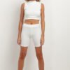 Krótkie spodenki kolarki są wykonane z miękkiej prążkowanej tkaniny. Spodenki mają podwyższany stan i klasyczny miejski krój, idealny do tworzenia modnych zestawów.