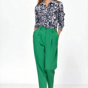 Spodnie typu balloon z wysokim stanem to uniwersalna propozycja, która stanowi idealną bazę biurowego outfitu. Świetnie prezentują się z białą koszulą i krótką marynarką, tworząc elegancki garnitur. Spodnie zostały wykonane z materiału z dodatkiem wiskozy. Po bokach znajdują się praktyczne kieszenie.