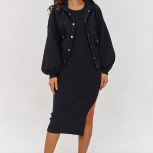 Jeden komplet, wiele możliwości! Sukienka w prążek bez rękawów i rozpinana bluza to zestaw stworzony dla kobiet, które cenią sobie wygodę i uniwersalność. Dzięki dwóm elementom możesz dostosować stylizację do każdej pory roku, latem nosić samą sukienkę, a w chłodniejsze dni dopełnić look ciepłą bluzą. Prążkowana sukienka dopasowuje się do sylwetki, podkreśla kształty, ale nie krępuje ruchów a dodatkowe rozcięcie z boku dodaje jej kobiecości i zmysłowości. Bluza z kapturem ma wygodne zapięcie co sprawia, że pasuje do wielu stylizacji. Dodatkowo jest wykonana z grubszego materiału dresowego co czyni ją na tyle uniwersalną że możesz ją wykorzystać jako dopełnienie stylizacji na każdą porę roku. Bluza została zaprojektowana w luźnym, oversizeowym kroju, co zapewnia pełną swobodę ruchów. A ściągacze na rękawach i u dołu dodają całości modnego designu. Załóż sukienkę solo w cieplejsze dni i ciesz się lekkim, kobiecym lookiem. Gdy zrobi się chłodniej, wystarczy zarzucić bluzę z napami, by stworzyć casualową, praktyczną stylizację, idealną do pracy, na spacer czy szybkie zakupy. Możesz nosić te elementy razem lub osobno, łącząc je z innymi ubraniami sneakersy, botki, trampki. Ten zestaw pasuje do wszystkiego! Wybierz stylowy i funkcjonalny komplet, który dopasuje się do Twojego stylu życia!