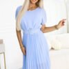 Plisowana szyfonowa sukienka z dekoltem i długim rękawkiem. Kolor chabrowy. Marka numoco. Produkcja polska.