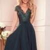 Rozkloszowana sukienka z dekoltem w kształcie serca. Sukienka w kolorze pudrowego różu z brokatem. Wysokiej jakości przyjemny w dotyku materiał. Marka numoco. Produkt polski.