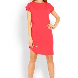 Asymetryczna sukienka z krótkim rękawkiem. Wysokiej jakości bawełna.