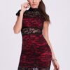 Elegancka sukienka bez rękawkami o rozkloszowanym dole. Na przodzie naszyta koronka.