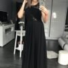 Sukienka mini z falbanką i wstążką przy dekolcie. Sukienka posiada koronkowe rękawy. Sukienka zapinana na zamek.