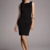 Elegancka sukienka z krótkim rękawem. Talia i zakończenia rękawów wykonane z eco skóry. Z tyłu rozporek. Zapinana na kryty zamek.