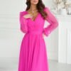 Elegancka, dopasowana sukienka z zabudowanym dekoltem i odkrytymi plecami. Spódnica uszyta asymetrycznie, pięknie podkreśla kształty. Góra kreacji w kształcie trapezu, wykończona na plecach guziczkiem. Sukienka zapinana na kryty zamek, posiada podszewkę. Dostępna w subtelnych kolorach.