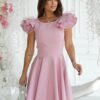 Elegancka sukienka z nietuzinkowymi bufkami na ramionach. Kreacja bardzo dobrze skrojona, idealnie podkreśla talie. Sukienka zapinana na kryty zamek. Model odpowiedni na niezobowiązujące przyjęcia jak i te bardziej eleganckie. Dostępny w stylowych kolorach.