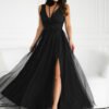 Zjawiskowa kreacja z dwoma cekinowymi rękawami. Dekolt delikatny w kształcie serka, lekko eksponuje biust. Dół sukienki przekładany, z efektownym rozcięciem na nodze. Uroku i szyku dodają cekinowe rękawy, które są idealnym dodatkiem do kreacji. Sukienka zapinana na kryty zamek, posiada podszewkę. Dostępna w prześlicznych kolorach.