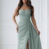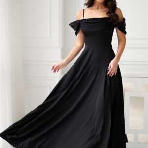 Sukienka maxi o wyjątkowo kobiecym kroju z opadającymi ramiączkami, które subtelnie podkreślają ramiona, dodając całości romantycznego charakteru. Długi fason zmysłowo wydłuża sylwetkę, a efektowne rozcięcie po boku zapewnia swobodę ruchu i dodaje odrobinę eleganckiej drapieżności. Wykonana z lekkiego, przyjemnego w dotyku materiału, który pięknie układa się na ciele, podkreślając atuty figury. To wybór, który łączy klasę i wygodę, idealny dla kobiet ceniących elegancki, ale swobodny styl. Sukienka zapinana na kryty zamek co ułatwia zakładanie i zdejmowanie kreacji.