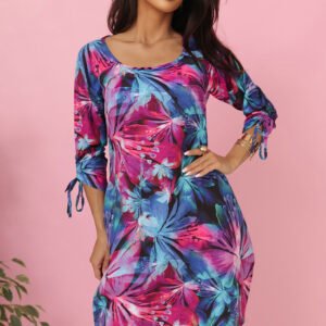 Ożyw swoją garderobę dzięki wyjątkowej sukience oversize marki Numoco z tropikalnym, kwiatowym wzorem! Ten luźny fason zapewnia maksymalną wygodę i swobodę ruchów, a intensywne barwy fuksji, niebieskiego i turkusu przyciągają spojrzenia i dodają energii każdej stylizacji Sukienka posiada rękawy 3/4 z uroczym wiązaniem, co dodaje lekkości i dziewczęcego uroku. Wykonana z wysokiej jakości materiału, idealnie sprawdzi się na wakacje, letnie wyjścia, spacer po plaży czy spotkanie z przyjaciółmi Uszyta w Polsce z dbałością o każdy detal, wspieraj polskie szwalnie i wybieraj sprawdzoną jakość Numoco!