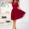 Dopasowana góra podkreśla talię, a długa, zwiewna spódnica optycznie wysmukla sylwetkę. Efektowne rozcięcie dodaje lekkości i swobody ruchu. Wykonana z miękkiego, połyskującego materiału, który delikatnie mieni się przy każdym kroku. Sukienka zapinana na kryty zamek. Góra sukienki posiada podszewkę, dół bez podszewki. Idealna na wyjątkowe okazje, łączy klasę i komfort.