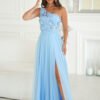 Sukienka z akcentem balowej elegancji i luksusu. Sukienka wykonana z połyskującej satyny. Szeroki, elegancko układający się dół nadaje jej luksusowego wyglądu, a ukryte w spódnicy kieszenie dodają praktyczności. Zmysłowe gorsetowe sznurowanie na plecach podkreśla talię. Sukienka zapinana na kryty zamek. Idealna na studniówkę, wesele i inne wyjątkowe okazje.