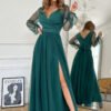 Olśniewająca satynowa suknia maxi, która łączy klasyczną elegancję z nowoczesnym blaskiem. Dopasowany fason z modnym, kwadratowym dekoltem pięknie modeluje biust, a gorsetowe sznurowanie na plecach gwarantuje idealne dopasowanie. Wysokie rozcięcie na nodze dodaje całości lekkości i niezaprzeczalnego, kobiecego uroku. Sukienka zapinana na kryty zamek co ułatwia zakładanie i zdejmowanie kreacji.