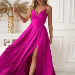 Sukienka o balowym charakterze, wykonana z miękkiego materiału. Szeroki, elegancko układający się dół nadaje jej luksusowego wyglądu, a ukryte w spódnicy kieszenie dodają praktyczności. Zmysłowe gorsetowe sznurowanie na plecach pięknie podkreśla talię. Sukienka zapinana na kryty zamek. Idealna na studniówkę, wesele i inne wyjątkowe okazje.
