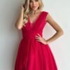 Olśniewająca sukienka wieczorowa w odcieniu mięty, wykonana z subtelnie połyskującej tkaniny zapinana na kryty zamek. Nowoczesny gorset z efektownymi zakładkami przy dekolcie pięknie eksponuje ramiona, a fantazyjne drapowania w talii perfekcyjnie podkreślają sylwetkę. Głębokie rozcięcie na nogę dodaje kreacji zmysłowości i lekkości w ruchu. Odpinane ramiączka zapewniają swobodę stylizacji. To idealna propozycja na studniówkę, wesele lub inne wyjątkowe wydarzenia.