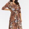 Sukienka maxi z dekoltem w hiszpańskim stylu. Górę sukienki zdobi falbana oraz wiązanie, dzięki któremu można regulować obwód dekoltu. Gumka podkreśla talię. Sukienka uszyta ze zwiewnego szyfonu, który pięknie układa się podczas chodzenia. Dół sukienki na podszewce. Produkt wyprodukowany w Polsce.