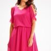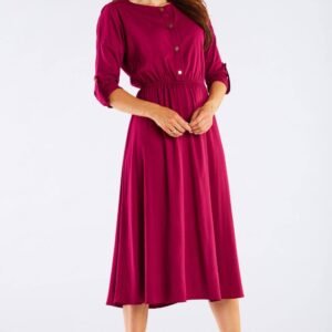 Sukienka midi z długimi rękawami kimonowymi. Idealna do pracy i na popołudniową kawę. Doskonale podkreśla atuty sylwetki, a szarfa podkreśla talię. Rękaw można podwinąć i przypiąć, aby się nie zsuwał. Elementy ozdobne to złote guziki-napy z przodu. Sukienka z gumką, dzięki czemu zapewnia idealne dopasowanie do talii. Niezwykle kobieca, pięknie układająca się podczas noszenia. Przewiewna i lekka, wykonana z naturalnej wiskozy. Produkt wyprodukowany w Polsce.