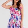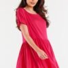 Sukienka z szyfonu na elastycznej podszewce, regulowana w pasie paskiem, lekko rozkloszowana na dole.