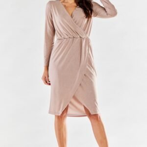 Sukienka kopertowa z gumką w pasie, pozwalająca na dopasowanie kreacji w talii. Rękaw długi, zwężany ku dołowi. Sukienka uszyta z delikatnej tkaniny, na elastycznej podszewce. Sukienka wyprodukowana w Polsce.