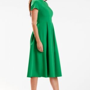 Sukienka midi z krótkim rękawem. Dekolt w łódkę. Zapinana z tyłu na kryty zamek. Sukienka pięknie modeluje sylwetkę i podkreśla atuty zarazem maskując mankamenty. Zaprojektowano i uszyto w Polsce.