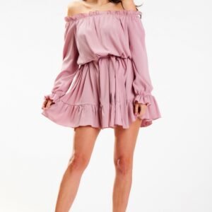 Sukienka hiszpanka z długim rękawem zakończonym falbanką. Można nosić ją na dwa sposoby, jako zwiewną dziewczęcą sukienkę w kształcie litery A, bądź związaną w pasie paskiem wykonanym z tego samego materiału co sukienka. Świetnie sprawdzi się do szpilek na różne uroczystości, jak i do trampek na co dzień. Zaprojektowano i uszyto w Polsce.