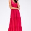 Elegancka sukienka midi na cienkich ramiączkach. Dekolt sukienki marszczony, lejący. W pasie marszczenie gumką w celu dopasowania do sylwetki. Zaprojektowano i uszyto w Polsce.
