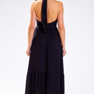 Sukienka wykonana z naturalnej, przyjemnej w dotyku wiskozy. Góra sukienki wiązana na szyję dzięki czemu można ją idealnie dopasować do sylwetki i biustu. Dół sukienki długi, zakończony falbanką. Odkryte plecy sprawdzą się na letnie upały. Zaprojektowano i uszyto w Polsce.
