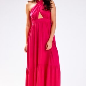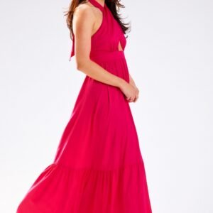 Sukienka wykonana z naturalnej, przyjemnej w dotyku wiskozy. Góra sukienki wiązana na szyję dzięki czemu można ją idealnie dopasować do sylwetki i biustu. Dół sukienki długi, zakończony falbanką. Odkryte plecy sprawdzą się na letnie upały. Zaprojektowano i uszyto w Polsce.