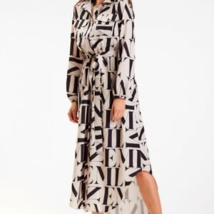 Koszulowa sukienka maxi z dwoma kieszeniami. Długi rękaw zakończony gumką. Zapinana na złote, okrągłe guziki. W zestawie posiada pasek uszyty z tego samego koloru i materiału. Sukienkę można zawiązać na wiele sposobów, dzięki temu każdy nosi ją jak chce. Model ten pięknie podkreśli talię, a zarazem ukryje mankamenty sylwetki. Zaprojektowano i uszyto w Polsce.