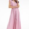 Elegancka sukienka mini z krótkim rękawem. Luźny, trapezowy krój pozwala ukryć drobne niedoskonałości sylwetki. Dzięki swojej prostocie może być użyty zarówno na rodzinne uroczystości jak i do pracy biurowej.