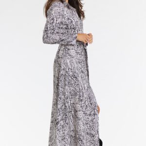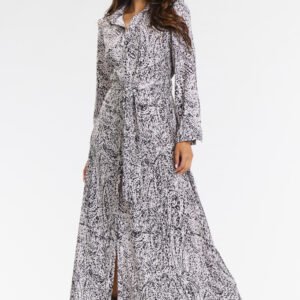 Sukienka koszulowa maxi. Odkryj nową definicję elegancji z naszą sukienką koszulową maxi, idealną na każdą okazję, od pracy po spotkania. Casualowy styl łączy się z funkcjonalnością, a przewiązanie szarfą w talii dodaje jej uroku. Długie rękawy, zapięcie na guziki i czarno-biały wzór wprowadzają nowoczesny charakter do codziennych stylizacji. Sukienka została uszyta z wysokiej jakości materiału, który zapewnia komfort noszenia. Możliwość regulacji rękawów i zapięcie na guziki dodają wszechstronności, idealnej na każdą porę roku. U Idealna na co dzień, do pracy i na spotkania, dzięki przewiązaniu w talii sukienka dopasowuje się do sylwetki.