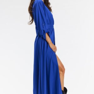 Luźna, kopertowa sukienka maxi z wiskozy. Odkryj nowy poziom komfortu i elegancji z luźną sukienką kopertową maxi w kolorze niebieskim. Idealna na co dzień, oferuje styl i wygodę na różne okazje, od pracy po spotkania z przyjaciółkami. Kopertowy dekolt podkreśla biust, a gumka w talii zapewnia doskonałe dopasowanie. Uszyta z wysokiej jakości wiskozy, lekka i przewiewna. Rozcięcie na przodzie dodaje dynamicznego charakteru. Sukienka świetnie wygląda z kowbojkami, botkami lub trampkami. Idealna na co dzień, do pracy lub na swobodne spotkania, łącząc casualowy styl z eleganckimi detalami.